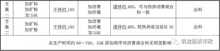 添加集料的同時將固體溫拌劑投入拌鍋攪拌均勻,盡量采用自動稱量添加設備,也可以采用人工投放方式,但用量必須控制準確,固體溫拌劑摻量為瀝青用量的3%(外摻法,質量比)。如果為人工投放,可預先準備好每盤料用量的容器,提高投放效率,也可預先稱量好拌和樓每盤料所需固體溫拌劑用量,分成小袋直接投放。