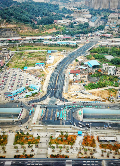 該項目屬于火車站北片區“一橫一縱一環”路網中的一環,是火車站北站房片區的重點工程,也是連接羅龍路與火車站北站房旅客出發平臺的唯一通道,項目建成對完善片區功能開發需要具有重要意義。1月1日起,站前高架橋已順利通車,前往出發層的市民可從高架橋進入北站房,而到站旅客將從廣場出站,進出分流,交通疏導更加順暢。