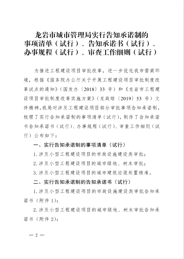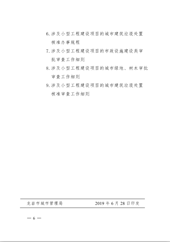 龍巖市城市管理局關于印發工程建設項目審批制度改革有關政策的通知(龍城[2019]91號)
